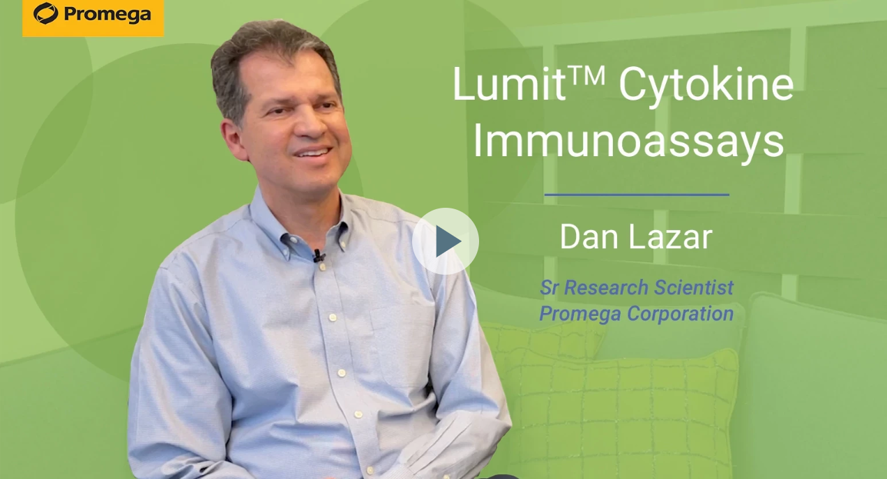 Learn about the benefits of Lumit Cytokine Immunoassays in this video interview with Promega scientist, Dan Lazar, PhD.