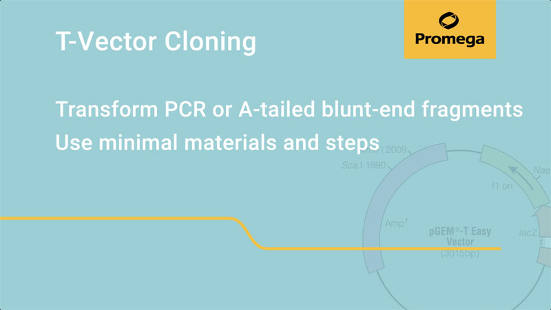 The pGEM®-T Vector Systems are convenient systems to clone PCR products generated by certain thermostable polymerases. These polymerases often add a single deoxyadenosine, in a template-independent fashion, to the 3´-ends of the amplified fragments. The pGEM®-T Vector is ready to use in ligation reactions, prepared by cutting the pGEM®-5Zf(+) Vector with EcoRV and adding a 3´ terminal thymidine to both ends. These single 3´-T overhangs at the insertion site greatly improve the efficiency of ligation of a PCR product into the plasmid by preventing recircularization of the vector and providing a compatible overhang for ligation of PCR products with A overhangs.